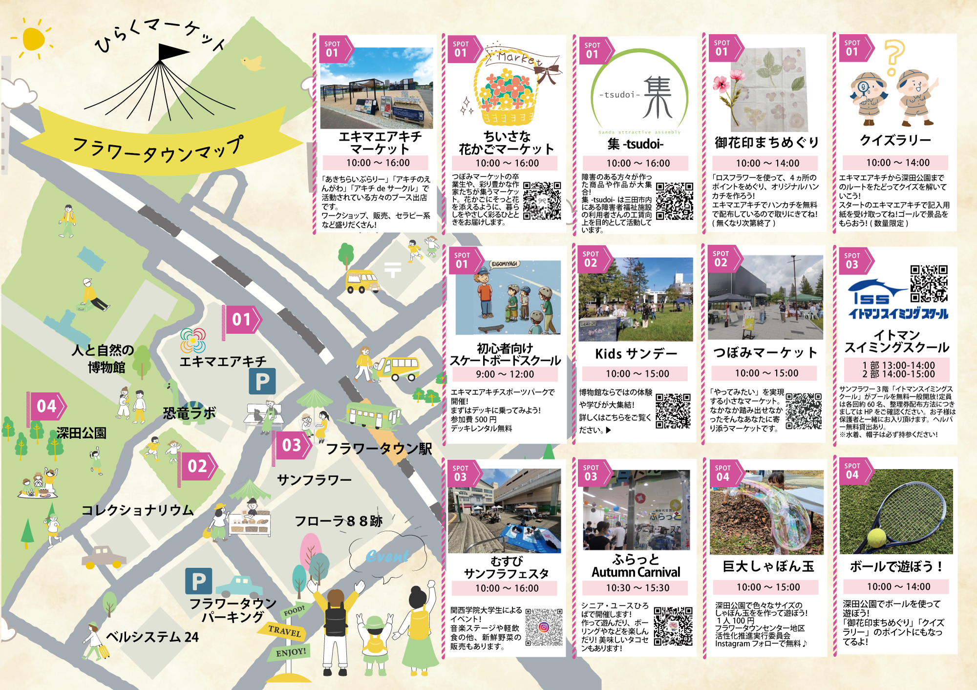 フラワータウン周辺の事業者や地域の皆さんと一緒に、いろんな「ひらく」が叶うイベントを目指しています✨